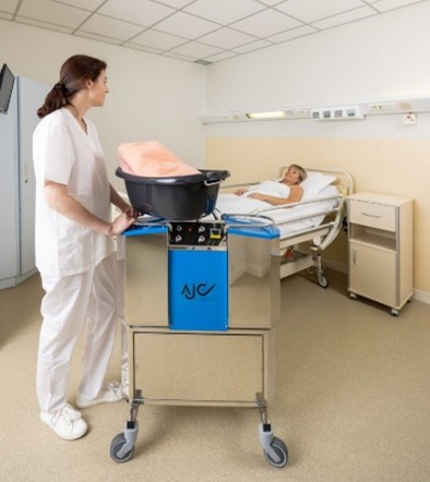 Acest echipament a fost special conceput pentru igienizarea pacienților imobilizați, direct în pat, rapid și în condiții de confort și siguranță.